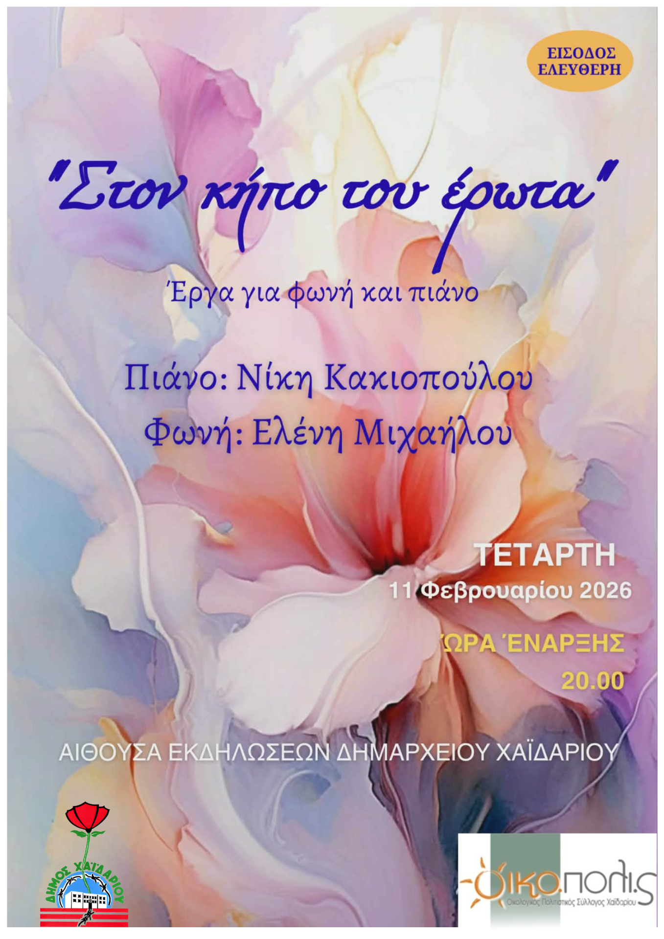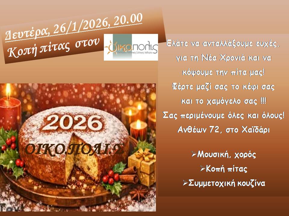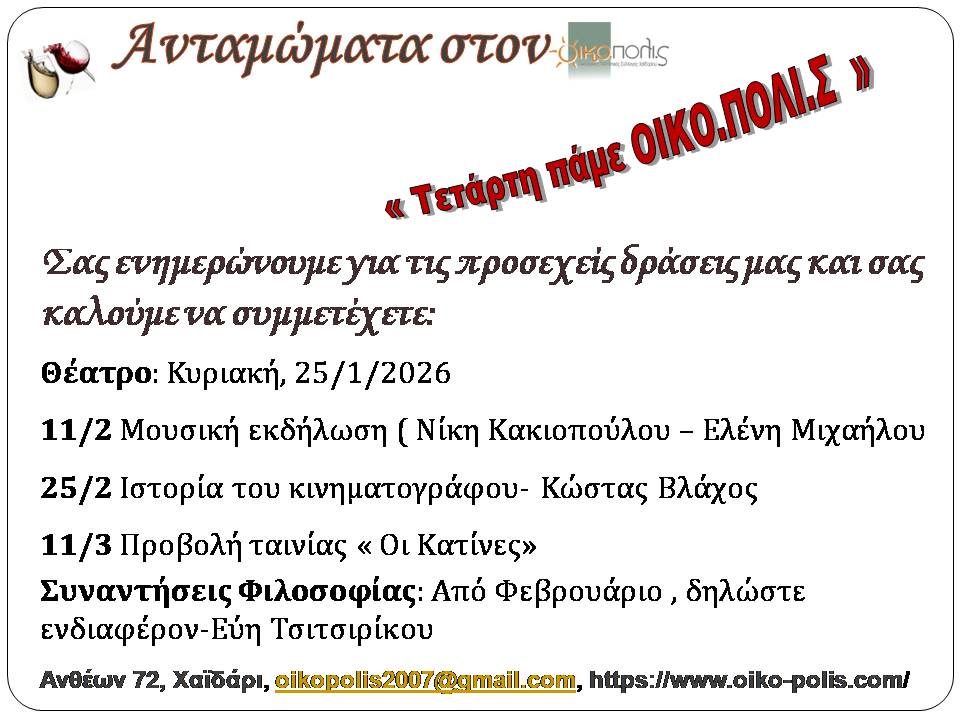Πληροφορίες- επικοινωνία: τηλ. 6909283795 και oikopolis2007@gmail.com