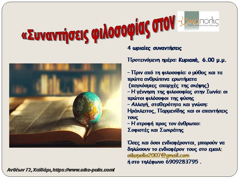 ΣΥΝΑΝΤΗΣΕΙΣ ΦΙΛΟΣΟΦΙΑΣ ΣΤΟΝ ΟΙΚΟΠΟΛΙΣ
